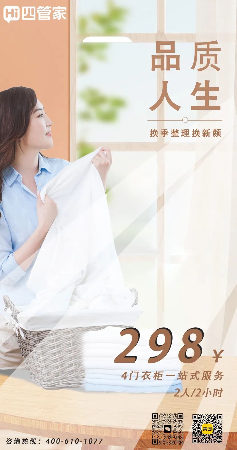 🍂随着秋风的轻拂,我们迎来了秋风的问候。为了让那些沉睡已久的秋装重见天日,同时为即将到来的冬季做好准备。今天,Hi四管家带来了一个超值的衣橱整理方案——4门衣柜,一站式整理收纳仅需298元!